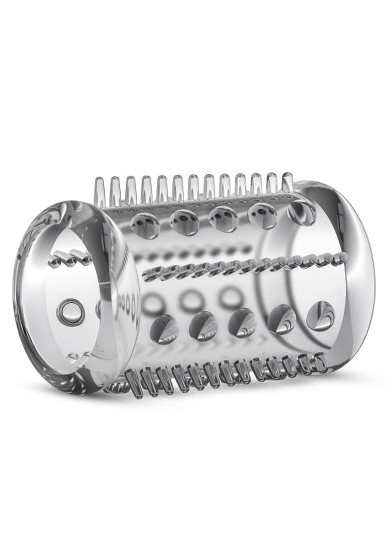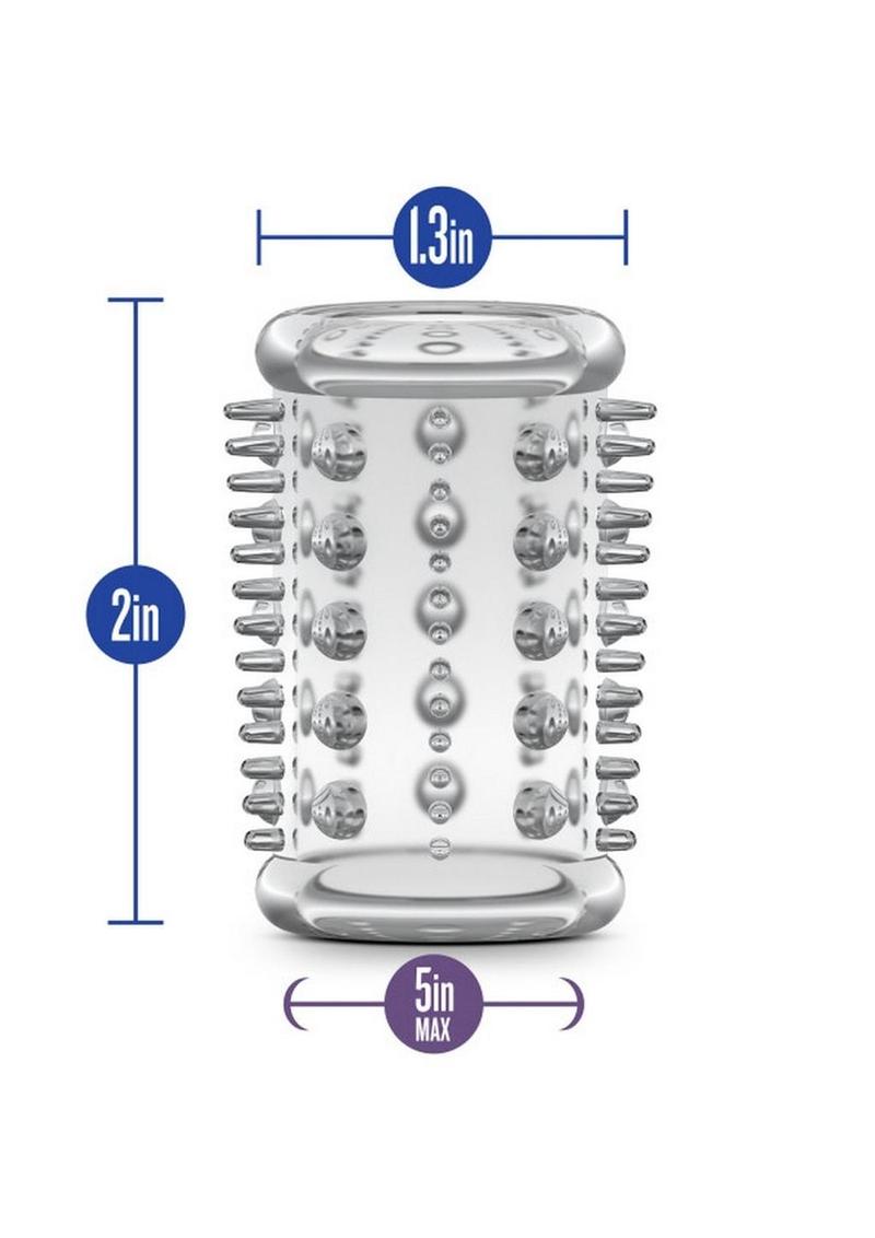 This stretchy enhancement sleeve is a simple way to add a new level of pleasure and sensation to your penis, favorite dildo or vibrator. Just slide the sleeve over your shaft. Stack them for even more pleasure. Buy more so you can mix and match and stack them to create a unique erotic experience every time. Easy to use, and stays in place. Measures 2" Length x 1.4" Width. Comfortably stretches up to 3" Wide. Maximum stretch to 5" Width. Lab tested body safe. Silicone, water based, hybrid lube compatible.