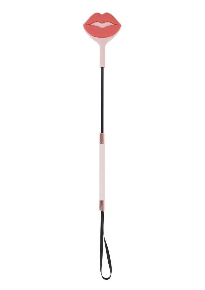 Seal the deal with a kiss they wonb t forget. The Peaches b N CreaMe Kiss Crop features a soft, 100% silicone tip with a raised lip design that leaves a juicy kiss imprint with every well-aimed swat. The flexible yet firm tip delivers a sharp, satisfying sting that lingers on the skin and even longer in their memory. Adorned with gleaming rose gold accents and wrapped in peachy faux leather, the handle feels just as good in your grip as it looks. A matching wrist loop makes storage simple and impromptu play irresistible. With its flirty design and striking bite, this crop leaves a sensual mark that says, loud and clear: you were here.