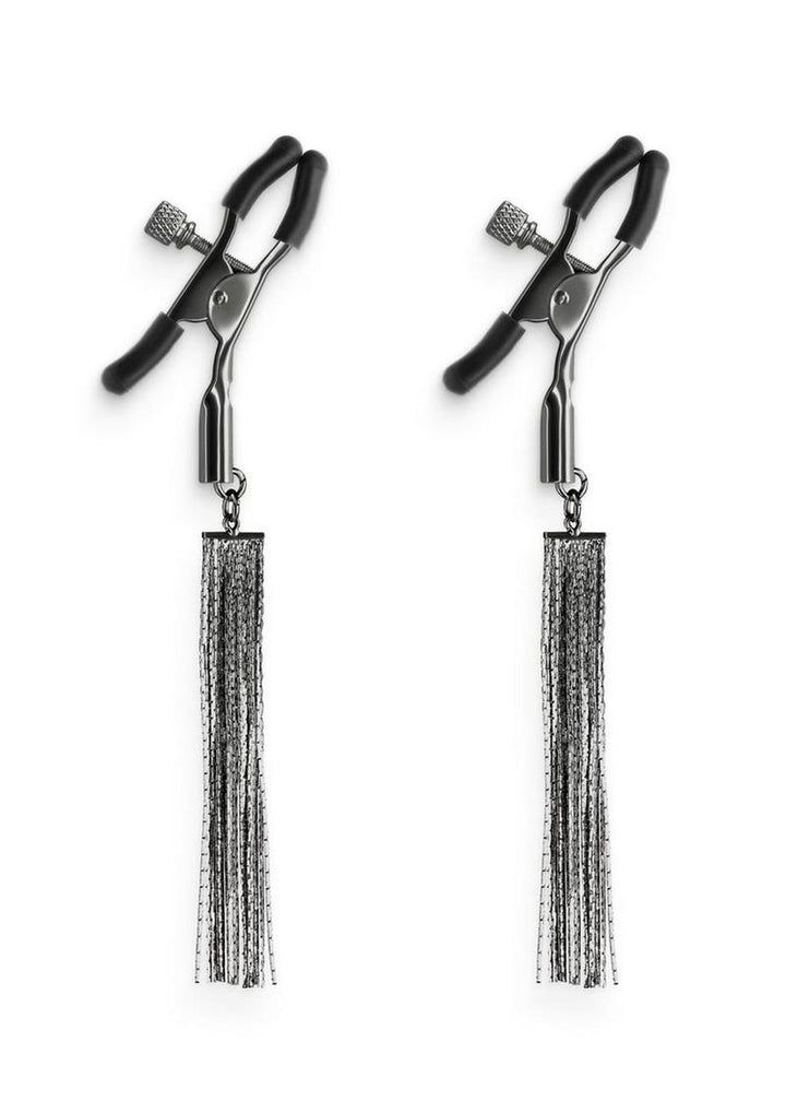 Bound Adjustable Nipple Clamps are for erotic and stimulating sensations. Made from nickel-free metal, Bound's clamps feature silicone tips for a better comfort and fit. Dangling chains.