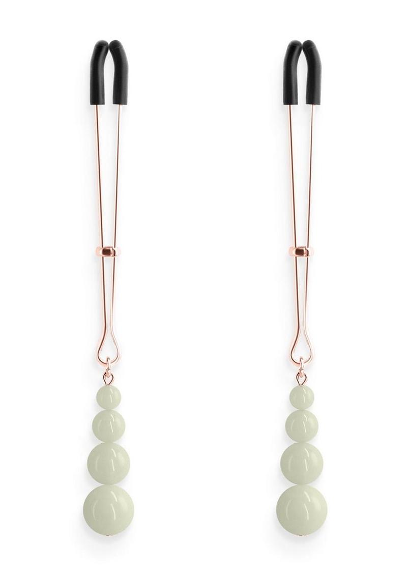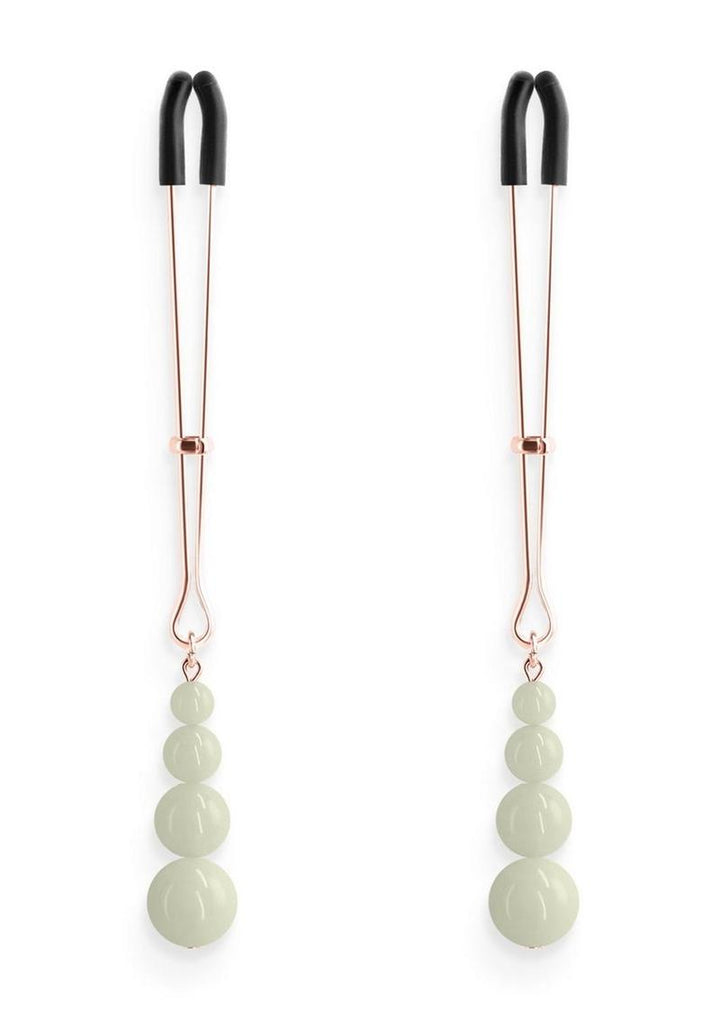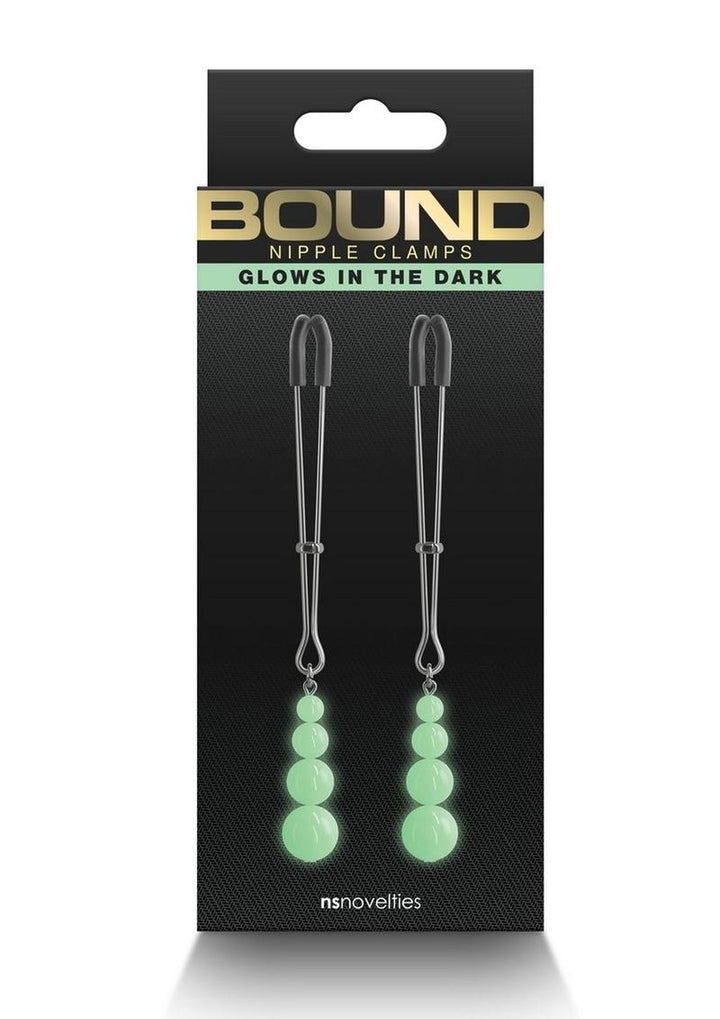 Bound Adjustable Nipple Clamps are for erotic and stimulating sensations. Made from nickel-free metal, Bound's clamps feature silicone tips for a better comfort and fit. Glows in the dark.