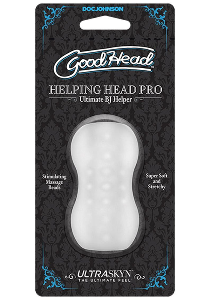 Doc Johnson's new GoodHead Helping Head Pro is a 3b mini stroker specifically designed for handheld use to heighten the sensations and pleasure during fellatio. Soft on the outside, and with stimulating massage beads on the inside, this uniquely-shaped stretchy stroker is made from our clear ultra-realistic ULTRASKYN, for the ultimate feel. Turn GoodHead into great head tonight!