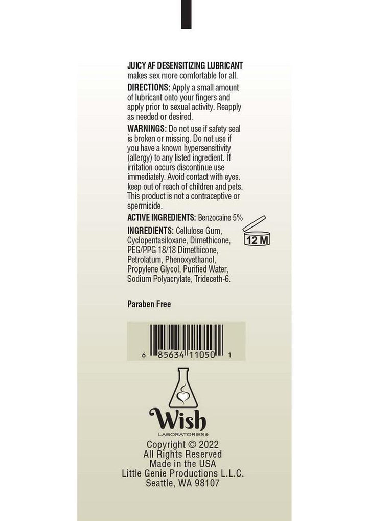Densitizing lubricant to make sexual experiences more comfortable, has 5% Benzocaine in a thick creamy gel, stays where you want it most.