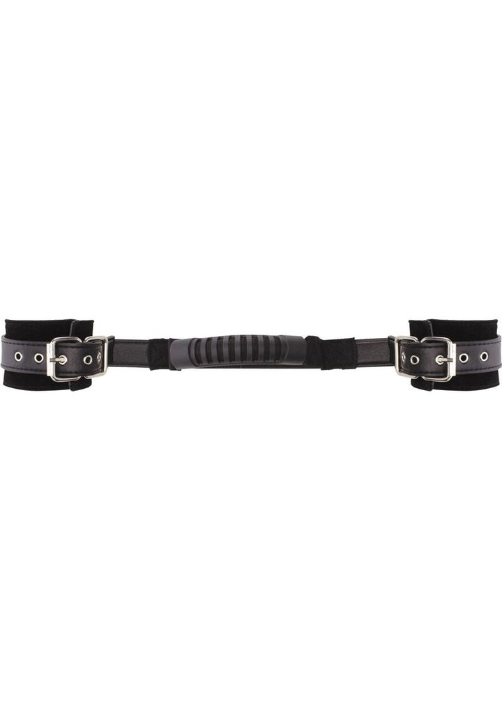 Looking for a handcuff with handle that is made to play hard with? Look no further. The Ajustable Leather Handcuffs with Handle of Ouch! are comfortable but incredibly secure and have quality leather straps with soft fabric on the outside. With straps for the cuffs adjusting the size is a breeze and fits almost any wrist. Because of the handle you can easily hold on to your partner from behind.